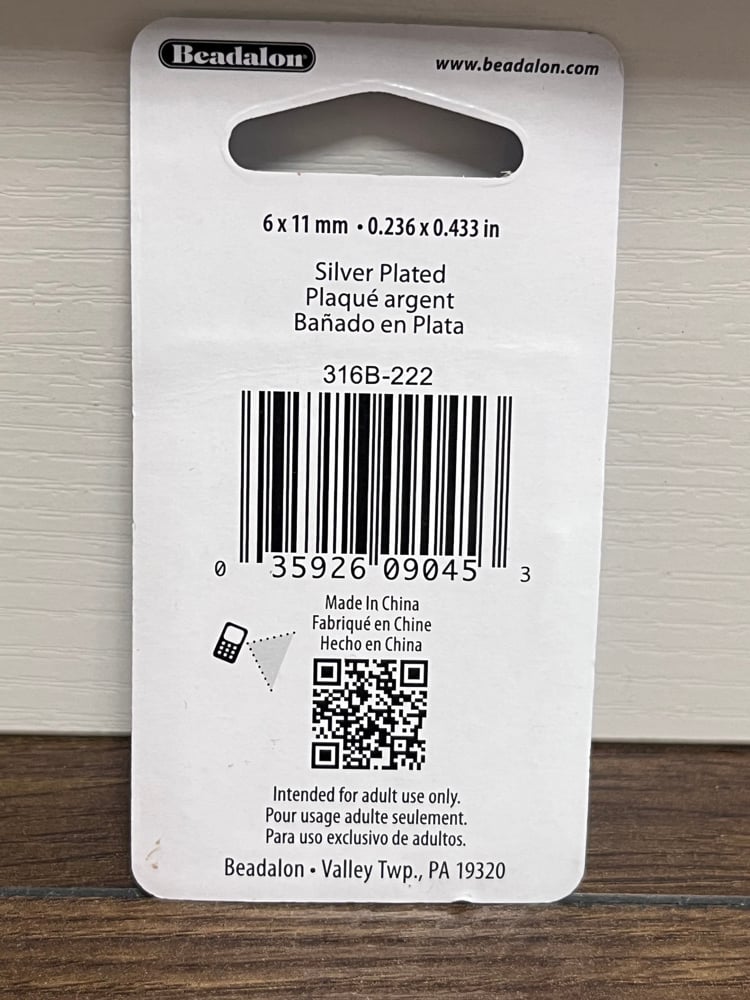 Beadalon 鍍銀磁扣,每包包含兩組。尺寸為 6x11mm。適用於製作珠寶或手鍊。