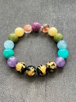 🧚🏻♀️This bracelet is crafted with gold-carved Four Divine Beasts combined with a seven-color chakra arrangement. Customization is available; however, due to limitations in bead size and color placement, please contact us for professional redesign if you need it resized or adjusted.
