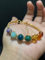 🧚🏻♀️This fully handmade metal wire-wrapped seven-color rainbow bracelet features a vibrant core of seven different natural gemstones woven into a dazzling rainbow glow, designed to balance and enhance the seven Chakras. Crafted with exquisite metal wire-wrapping techniques, it blends lines and warmth to create a one-of-a-kind spiritual accessory.